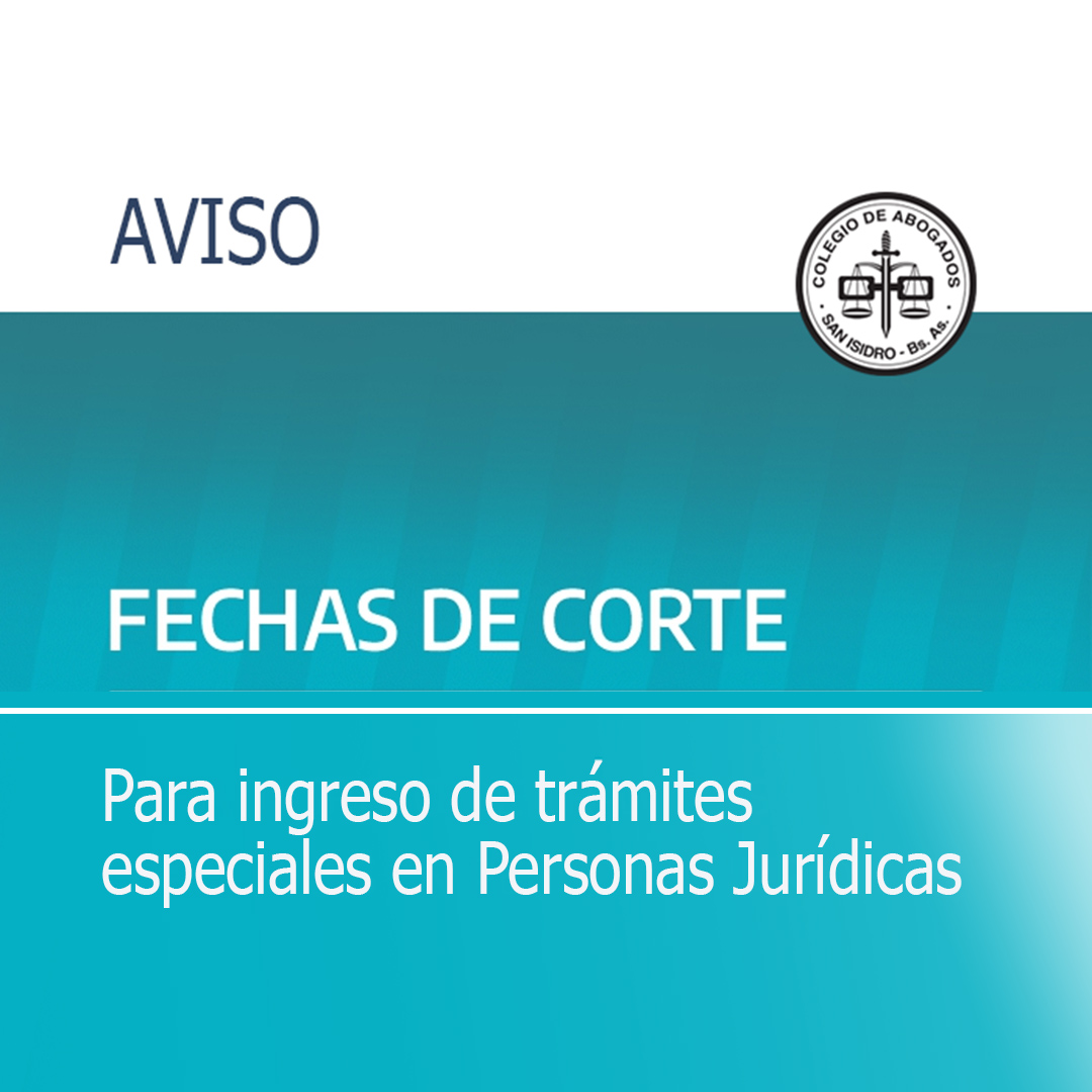 Fechas de corte para ingreso de trámites especiales en Personas Jurídicas