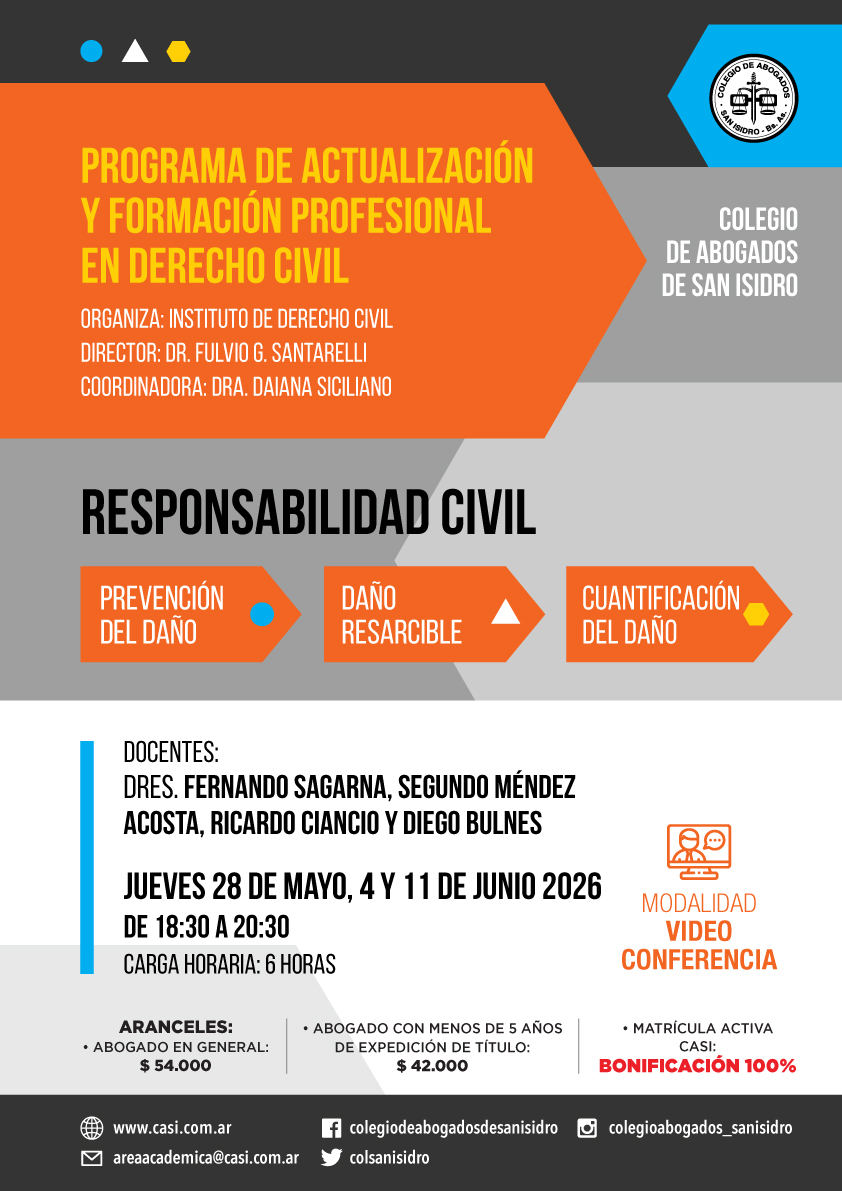 En esta oportunidad podrá inscribirse específicamente al curso "Responsabilidad civil" que comienza el jueves 28 de mayo.