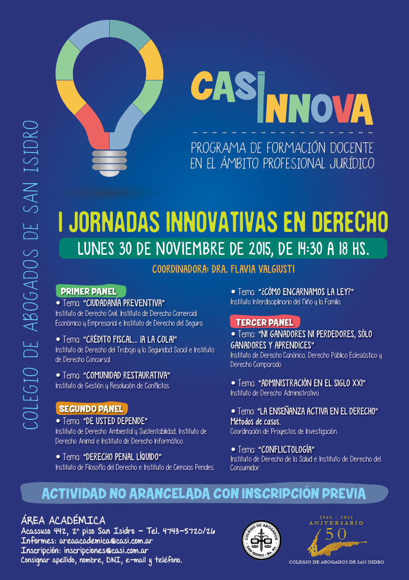 Los invitamos a recorrer ese camino en las primeras Jornadas innovativas en derecho denominadas CASI INNOVA. Los esperamos.