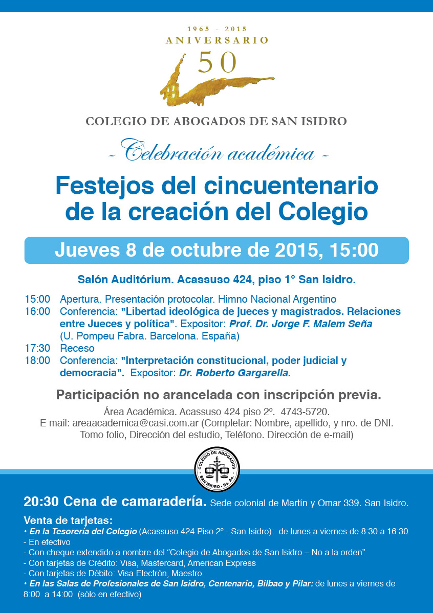 Acassuso 424. Piso 1° San Isidro. * Participación no arancelada con inscripción previa.-