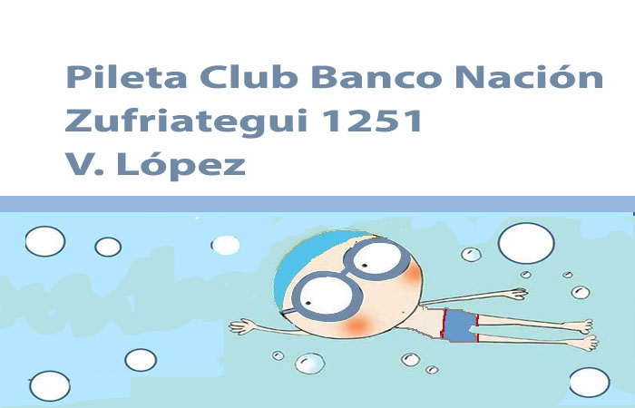 Vení a nadar con nosotros los días jueves de 19 a 20: 30 en la pileta club Banco Nación, calle Zufriategui 1251, Vicente López. Comenzamos el 9/5/2019. El entrenador nos marca la rutina de 19:15 a 20: 30. Vení, divertite y sé parte del equipo de natación.