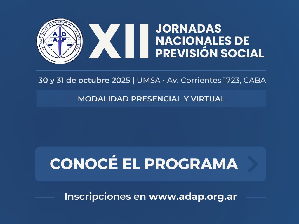 Invitamos a participar en las XII Jornadas Nacionales de Previsión Social 2025, organizadas por la Asociación de Abogados Previsionalistas, donde podrá enriquecer sus conocimientos y conectarse con profesionales del sector.